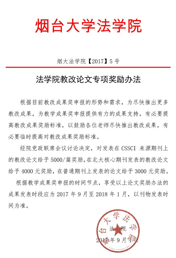 烟大91天堂 【2017】5号91天堂 教改论文专项奖励办法