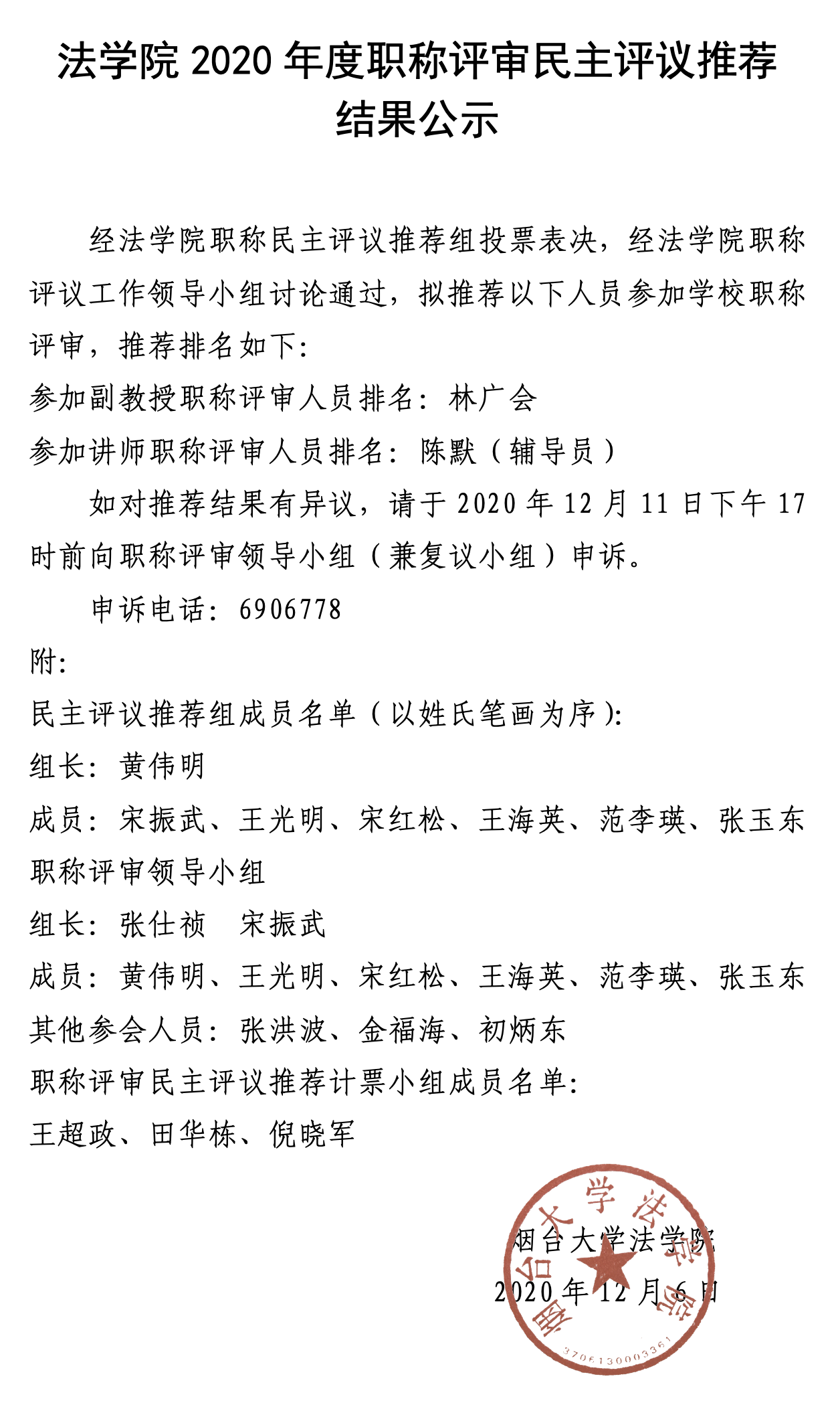 91天堂 2020年度职称评审民主评议推荐结果公示