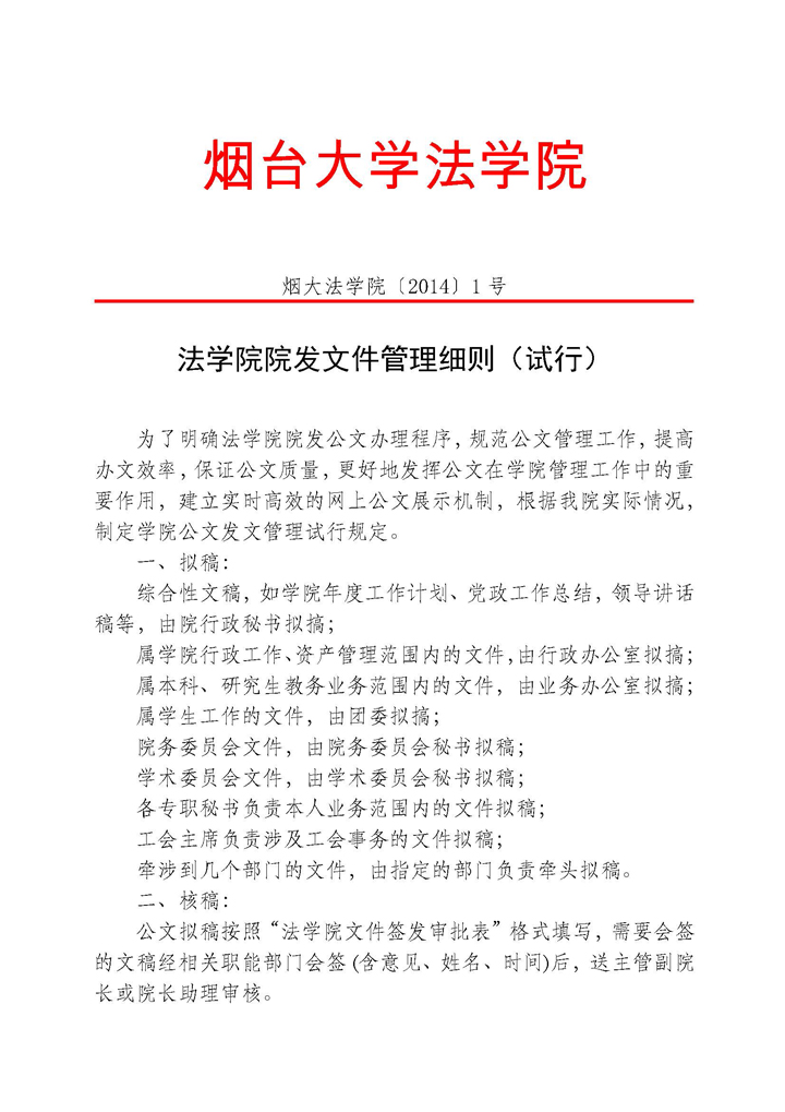烟大91天堂 [2014]1号——91天堂 院发文件管理细则(试行) 91天堂 院发文件申批表模板