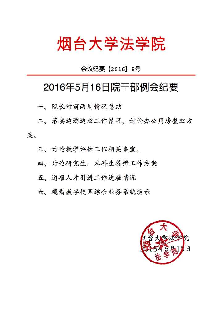 2016年5月16日院干部例会纪要