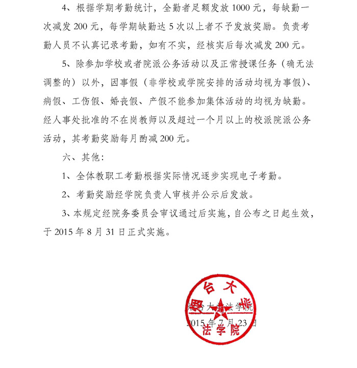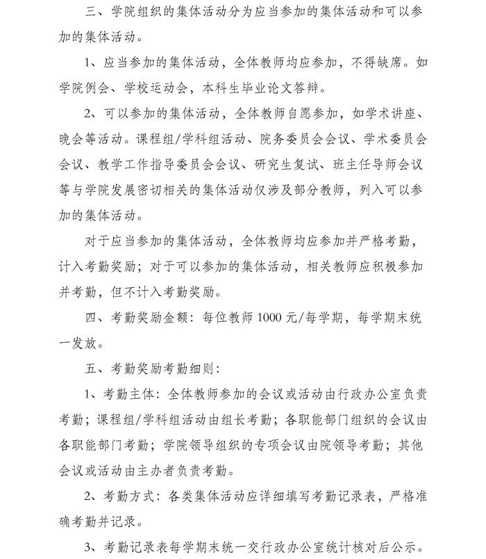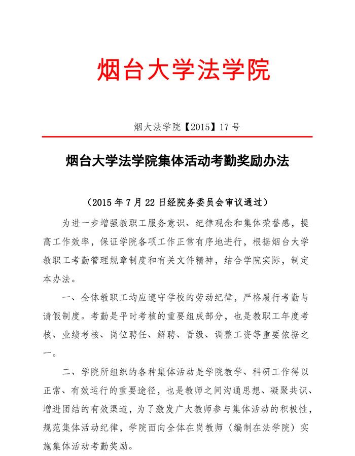 烟大91天堂 【2015】17号91天堂 集体活动考勤奖励办法