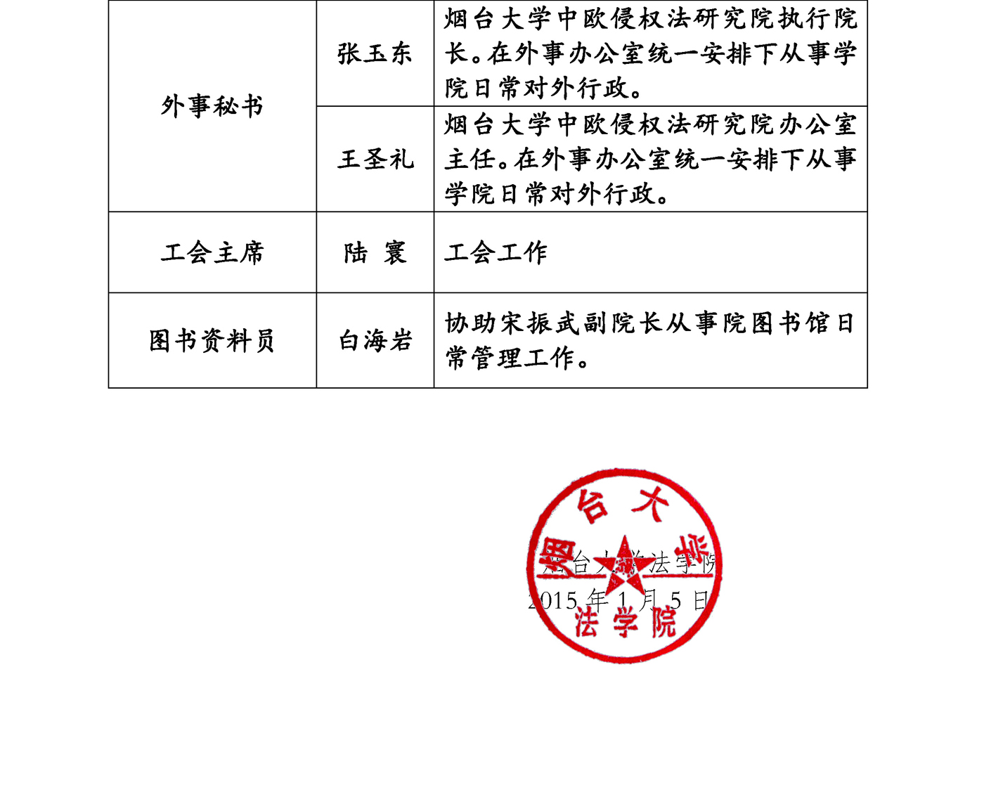 烟大91天堂 【2015】2号关于调整91天堂 院级领导和行政人员分工的通知