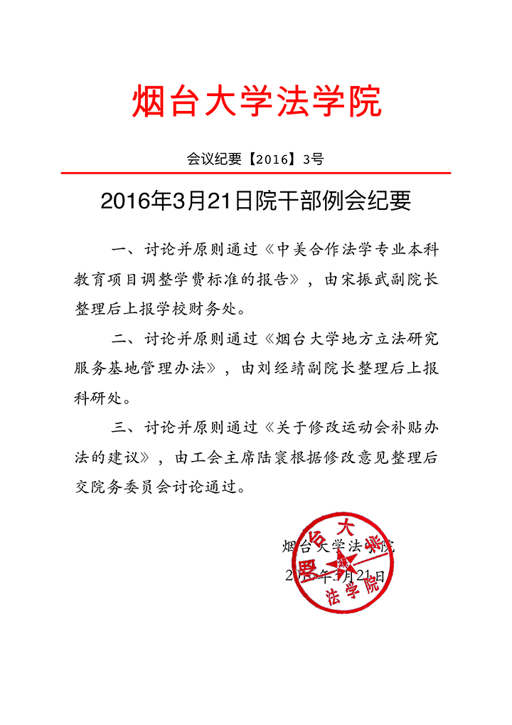 2016年3月21日干部例会纪要