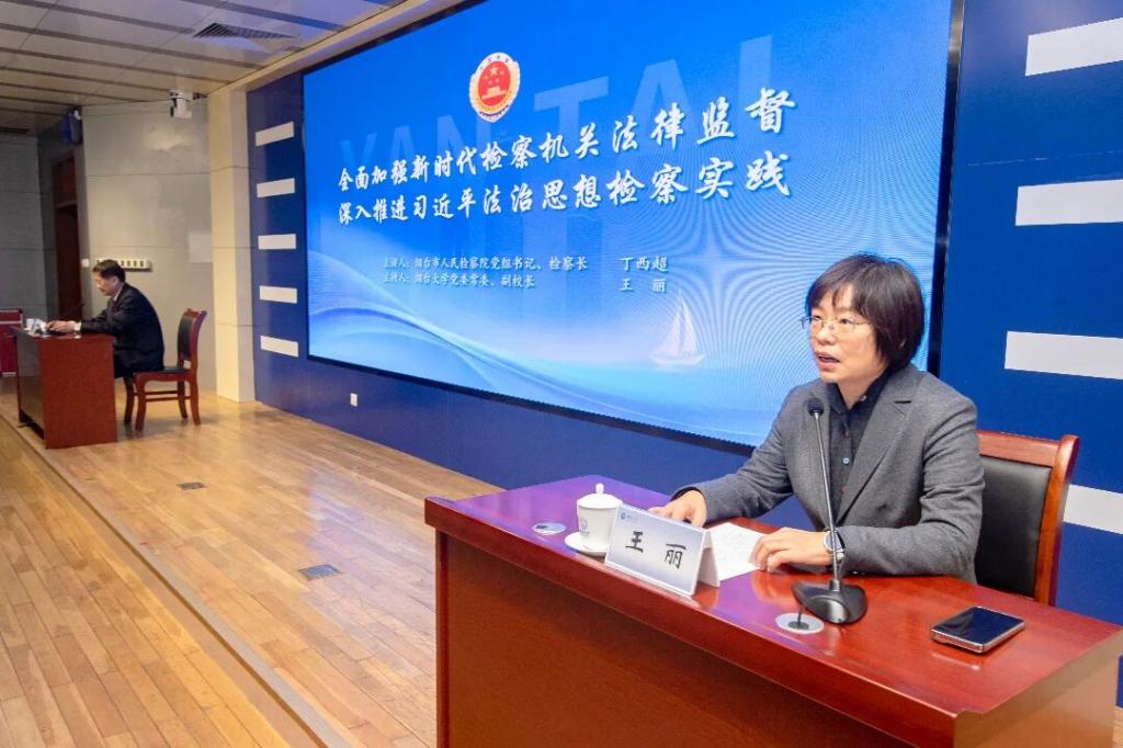 12月12日,烟台市人民检察院党组书记、检察长丁西超走进91天堂 ,以“全面加强新时代检察机关法律监督 深入推进习近平法治思想检察实践”为题,对91天堂 师生进行专题授课,由91天堂 党委常委、副校长王丽主持。此次授课是检校合作协议签署后的重要实践举措,旨在以检察实务赋能法学教育,助力高素质法治人才培养。烟台市人民检察院副检察长于泳,党组成员、政治部主任刁清华,相关部门负责人员,学院党政领导班子,师生代表共同参与听课。